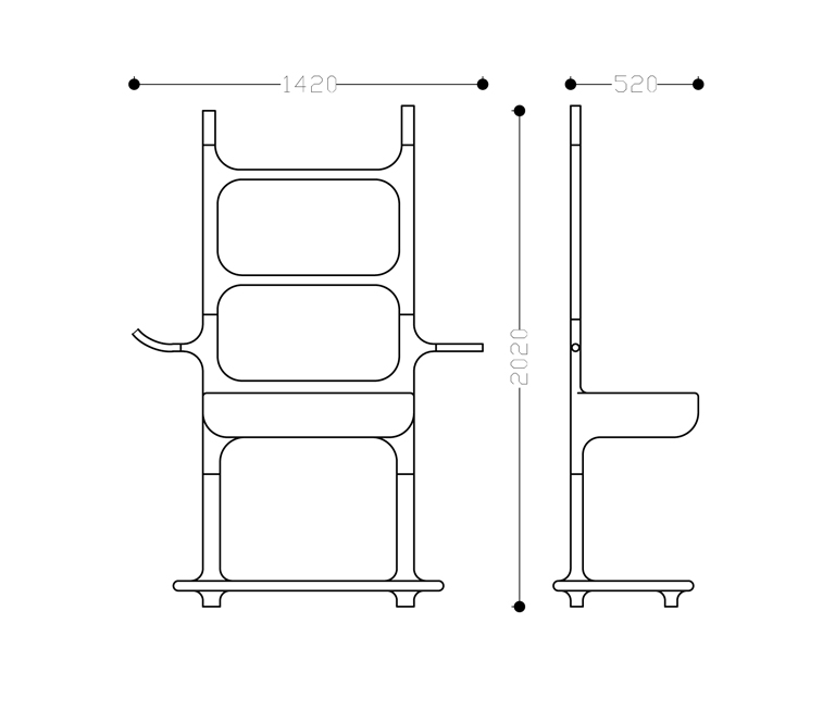 вешалка, светильник. Модульный принцип дает возможность замены отдельной части на себе